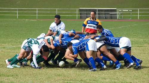 LATEST SCORE: FRANCE 15, GERMANY 15. REFEREE SOMEWHERE UNDERFOOT.