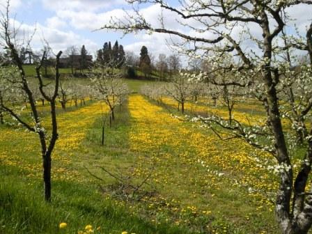 Everything’s in blossom here. The temperature is creeping up to 22 degrees in the afternoon, the pool is filthy but open, the grass has been given its initial cut, and our resident red squirrel is winding up the dogs a treat. There are few places nicer than Lot et Garonne in the Spring.