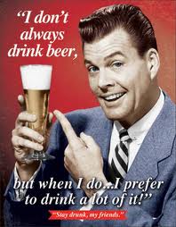 The over-beveraged banker staggers in, Stage Right