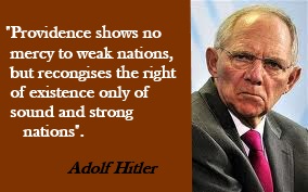 Germany has really done nothing less than force the rest of Europe to sue for peace. I got it wrong in 2012 when I wrote that Francois Hollande’s election shifted the EU balance of power away from Germany. This was partly because I did not have the remotest inkling of just how ineffectually hopeless Hollande would be. The degree of this can be measured by the increasing likelihood that France could have a Front Nationale President within three years. But I also must confess to having underestimated the talent that Wheelchair Wolfie has for regrouping ready for counter-attack.