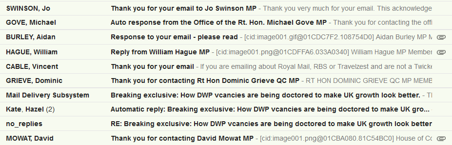 A small screen-capture extract from the response of MPs to this morning’s Slog exclusive about vacancy fibs at the JobCentrePlus site:
