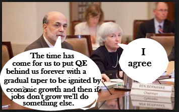 The tapering of QE in the US is going to be ooooooo so graduaaaarrrlllll. Ben has got Janet on message, and so now she’s not so much Yellen as willin’. It all feels a bit Dickensian: “You just tells her, Mr David, that Barkis is willing”. At school the spoonerism also occurred to me: Willis is barking. Janet Yellen seems to have gone native in record time.