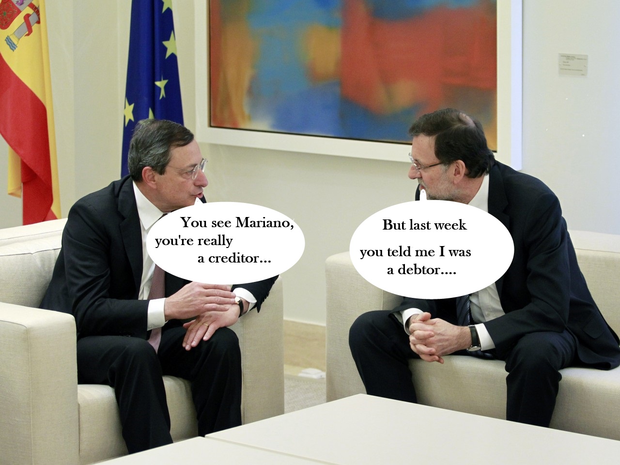 Further to this morning’s post (things do seem to be speeding up at last) you may recall I mentioned how the ECB thought that ‘a strict definition of bad debt could threaten banks in countries hit hardest by Europe’s debt crisis’. Just to enlarge on this a little, bad debt of the kind we’re talking about is rancid bordering on toxic: it ain’t never going to get paid back, and everyone knows this to be the case. What we’re witnessing here is Mario Draghi doing his Orwellian Ministry of Truth shtick, whereby something with blue paint on it marked Unfit for Human Consumption will be regraded as Quite Possibly Alright.