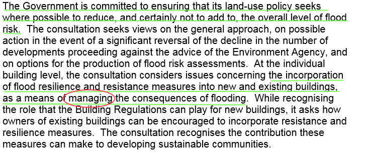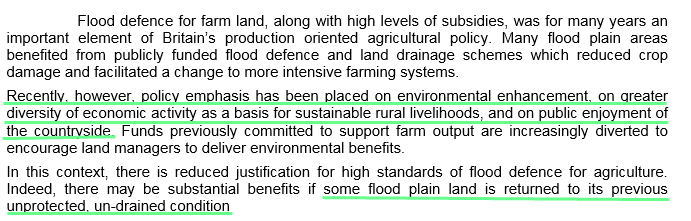 Som1ptnetSo the Government reaffirms that it is committed to not drowning people, but then starts shifting responsibility for floods to the construction industry. The key word there is ‘managing’ floods. This is Whitehall-speak for “floods are going to happen”. The document goes on to start piffling about changed land usage strategies. I wonder how many Somerset farmers read this document at the time, or even knew of its existence.