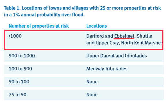 Specifically in the overview section, he compiled a table on Page 9 that showed there were more houses at risk of flooding in the Ebbsfleet-Dartford axis than anywhere else in North Kent: