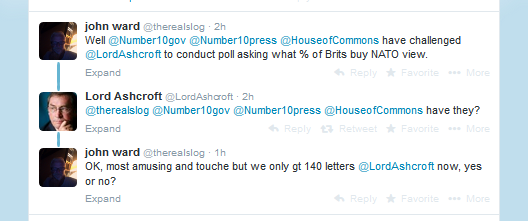 This was the challenge I tweeted to Lord Aschcroft today…such is the nature of Twitter, you have to read from down to up: