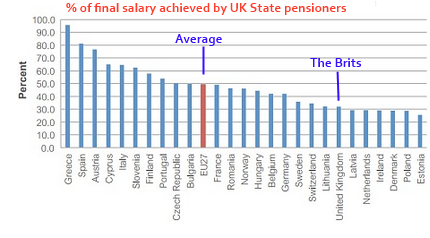 UKpensionsveuYes, we are a lowly 21st out of 27 in the EU for old age provision by the State.