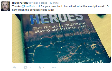 faragetweet2Yes, this man who has never won a UK Parliamentary election in his entire life is accepting an obviously generous donation from an equally unelected sympathiser. He is squirreling this unaccountable dosh away, and keeping his mouth shut….and thus, yes, quite transparently putting his money where his mouth is.