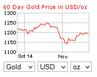 Bearing in mind that, long-term, it’s heading down from a $1780 peak, here we see the summer 2014 slip from 1375(ish) down to 1250, then small rally to 1325, slow spiral to 1200, small rally to 1250, then a quick fall to 1150 in October, then yet another small rally back to 1200. Not what you’d call a reliable investment….but in a time of unparalleled economic uncertainty, abnormal to say the least.