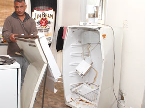 fridgebomb(Left) Exploding fridge rocks Berlin. (Reconstruction)