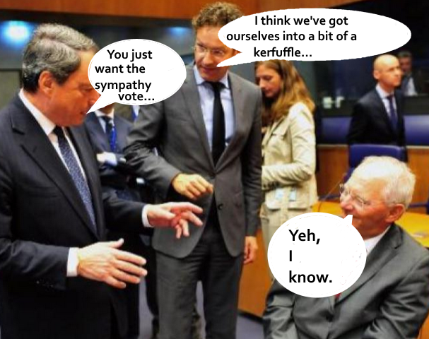 Less time, and yet more lists to come up with – this time by next Monday: run about, work-work, take planes, busy-busy and…DONG! Oh dear, Mr Tsipras, I’m afraid you’ve run out of time.