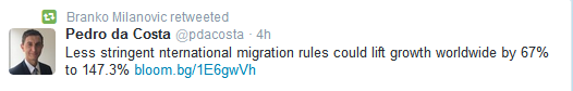 Leaving aside the words ‘less’ and ‘could’ in the above (and accepting those odd numbers as perhaps real) I have but one question for Pedro da Costa: why TF should people have to migrate in order to find work in a busted flush called globalist mercantilism? Isn’t the system supposed to be working for us, not the other way round?
