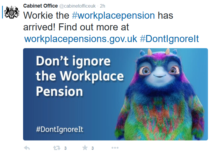 Workie is the fluffy new alien doomed to be the corporate character behind the Workplace Pension – the latest fantasy to emerge from Iain Dunkin-Smurf’s DWP. Workie is already a record-breaking commercials animation in that he doesn’t even appear on air until the first break on Corrie tonight [21st October 2015] but already every marketing and advertising agency from Aardvark to Zenith has panned him with a hitherto unknown level of blistering critique.
