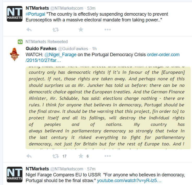 The Portuguese President’s decision to reappoint his Brussels-collaborationist government was (to be pragmatic about it) unfortunate, but the hoo-haa that has followed seems to me both unnecessary and riddled with double standards. Unsurprisingly, therefore, Nigel Farage is in the thick of it.