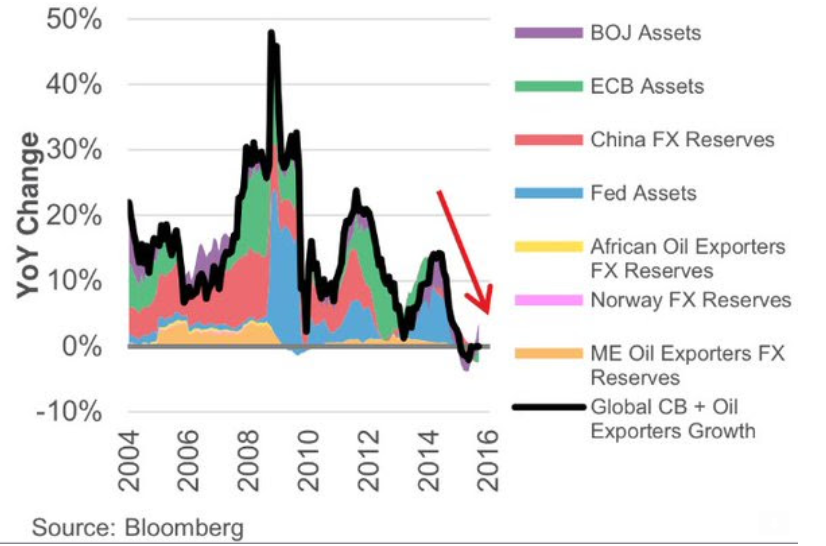 In fact, take the con of all cons QE out of the equation, and my view remains that the world has been in recession since 2011, and is approaching a full-scale slump. Again, Evans-Pritchard is keen to point out that the liquidity/investment picture is improving, but there are many facets of liquidity, and for the new global driver China, the investment picture has gone into Italian fifth-gear reverse. In the chart below, Establishment publisher Bloomberg pulls all the threads together to paint another bleak landscape: