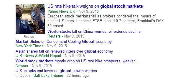 We are heading for a Crash, and the speed indicator on ‘when’ will be the next FOMC minutes (assuming nothing else goes bang beforehand). If Yellen puts rates up in December, it’ll be obvious by February that confidence has gone. If she doesn’t, then confidence will be eroded during the First Half by events in one or more of Brazil, China, ClubMed, RBS, Deutsche Bank or Syria.