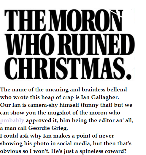 It should stop, but it won’t. So here’s my little Sunday Splash to give these gargoyles a taste of their own poison. This is what I’d make the Mail run – the next day, and featured alongside the article in question: