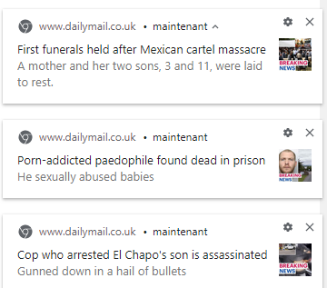 Returning now to the not unconnected job of every Mail editor – the boosting of sales at the cost of diluted civilisation in the best of élite corporate interests – I have begun – out of a desire to prove my point – to take daily alerts of their “news coverage”. Below are illustrated the last 48 hours-worth:
