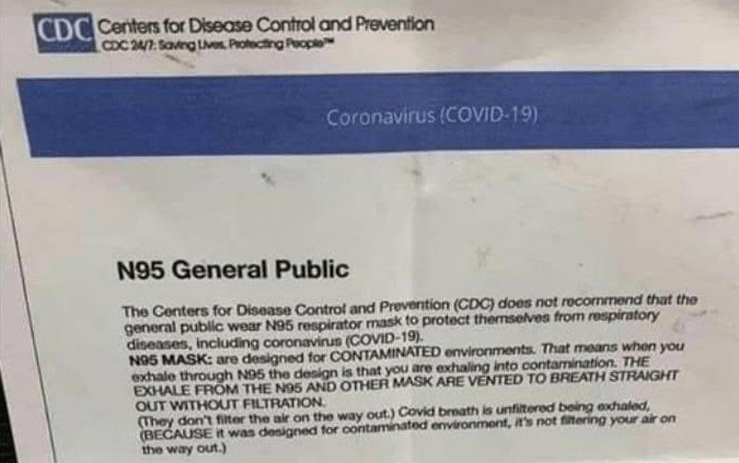 An N95 mask is designed for use in a contaminated environment: for argument’s sake, it’s the one to wear when dealing with a roomfull of dead Covid victims. The mask filters the air you inhale, but not your exhalation. So it’s not, repeat not, the one to wear if you are yourself infected. If you are, you should be in hospital. The N95 mask will not tell you if you’re infected – for that you need a test. But if you have had a negative test to Covid19 and you don’t want to catch it from someone else, the the N95 is the one for you. That’s why our leaders are issued with them….and we aren’t.