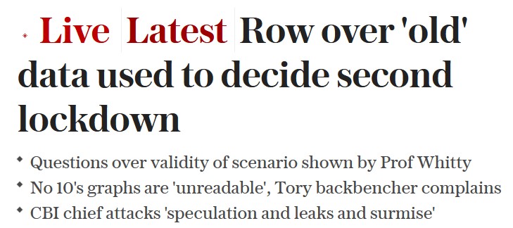 Contemporary styles of government in the US, UK and EU are, without question, at the stage before what we used to call ‘Kremlin Watching’ in the 1960-85 period. There was an excellent example in yesterday’s Sunday Telegraph on “why” the UK Prime Minister has U-turned yet again and ordered Lockdown2. Here are two telling extracts: