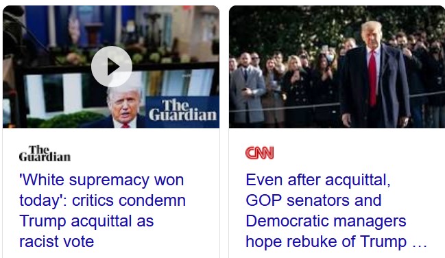 This isn’t just a piece about Donald Trump, but last night’s acquittal of the tangerine one (and its treatment by the usual media suspects this morning) make the point about precisely what the former President was fighting against for four years.