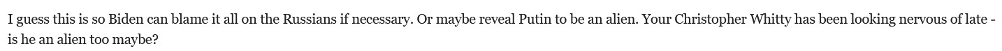 My point in this piece is, nevertheless, I hope clear: we do not have a Covid health problem any more than we have an Aliens problem, a serious climate problem…or indeed had a post-Brexit or Sadam Hussein problem. They are all merely excuses for the Surveillance-to-Energy freaks to indulge in international brigandry, 24/7 track and trace, and control of all movements on the basis of daringly invented fears.
