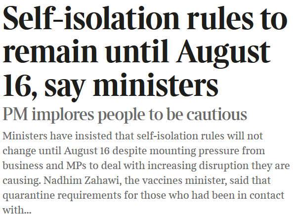 Hardly a surprise, then, that the one thing remaining firmly in place as Freedom Day draws to an undignified close is House Arrest. That both the PM and the Health Secretary are themselves undergoing isolation gives me little ironic relief – although it is, unintentionally, hilarious: a man who has been double-jabbed gains no protection from the virus, and a man who’s been both jabbed and gained personal immunity naturally acquired, is still considered dangerously infective. Up is down and four is two and Freedom Day is the Marks & Spencers lingerie counter.