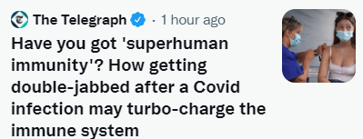 This is the “logic” zone now being plundered by those who have a one-eyed purple helmet snake where their brain really ought to be: you get Covid19, you recover (as 99.78% do) and that builds a natural immunity. But why be natural when you can get supernaturally ‘superhuman immunity’ to something?