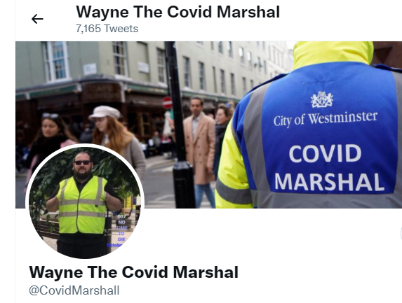 This has been typified by the so-called ‘Covid Marshalls’ in Britain. Now, a parody account starring one Wayne King has turned up on my Twitter timeline. (WayneKing – gerritt?)