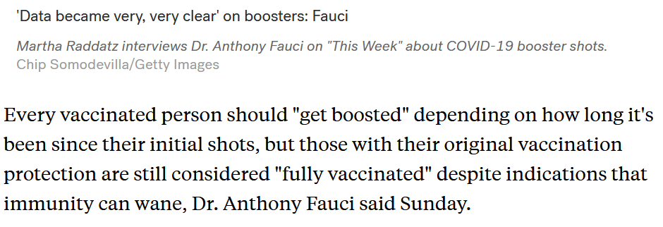 Meanwhile, across the Pond, Anthony Fauci is trying to make things clearer by being very clear about the lack of clarity in relation to the need for boosters, which is not yet official in the US:
