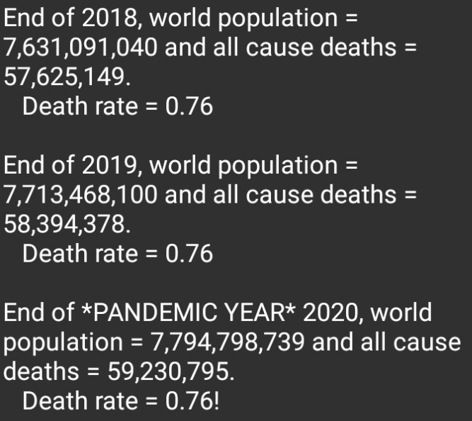 All that’s happening here is the recognition by a trussed-up, bought élite that their “vaccine” narrative has run out of road. This won’t bother them that much, because – even allowing for conflated levels of the jabbed and boosted – the vast majority of those unfortunates will fail to reproduce or live beyond the next two decades. Compare and contrast that outlook with the official global statistics (below right) on excess deaths in recent years, and how this relates to “a deadly virus”: