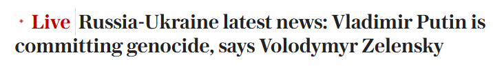 Having run out of yah-boo-sucks insult names for the Russian leader, the Daily Telegraph has turned elsewhere to find more objective views about Putin, and what better place to start than Volodymyr ‘Ten houses’ Zelenskskyy – the man for whom one y was never going to be enough. VoZel duly obliged