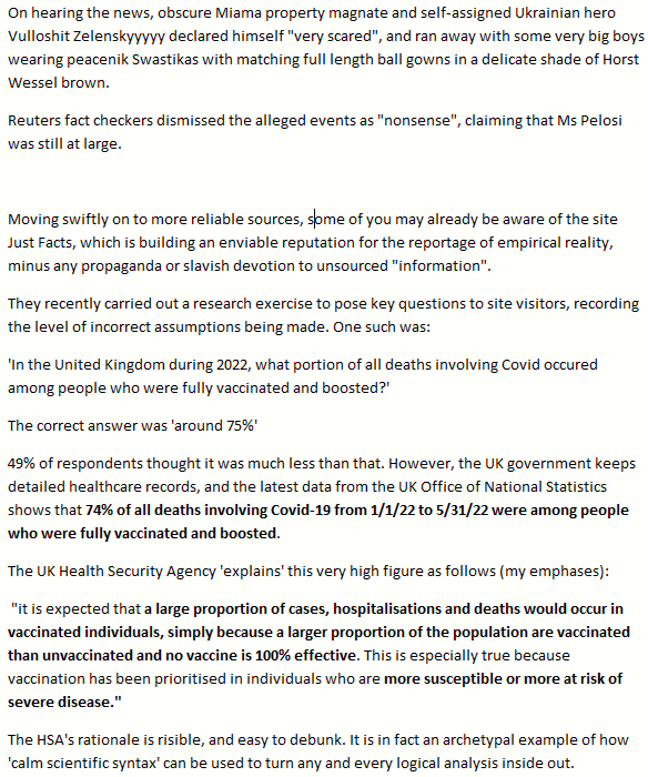 In a bold act of humanitarian mercy, The Slog Ultra Pacifist Army rescued Planet Earth from the undiplomatic geopolitical muddle of what passes for Nancy Pelosi’s mind this afternoon. Following a daring raid on USS Lewinsky, she was airlifted to a secret African destination where she underwent immediate plastic surgery under the swingeing scalpel of pro-am eugenicist Dr Saul Bollocks. The results (see above left) were later described by Joe Blob as “a vast improvement”.