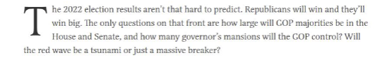 Echoing the 2020 elections, the context of the 2022 midterms appeared to predict gains, potentially huge gains, for Republicans. This piece of tea-leaf reading is typical: