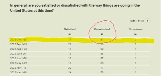 In addition to the traditional midterm losses sustained by the party-in-power, there was Gallup data and the Real Clear Politics poll-of-polls registering eye-watering dissatisfaction with the Biden Administration.