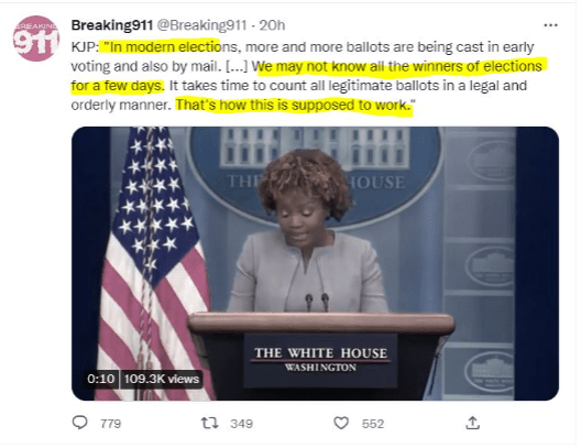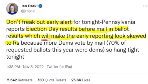 The last key ingredient to last week’s election was plenty of by-now-familiar expectation-adjustment, from the highest-powered female influencers, like NY Congresswoman “AOC”, White House spokesperson Karine Jean-Pierre, and her predecessor Jen Psaki, as well as “trusted” news and fact-checking entities like Vox and Politifact (funded by Soros, Deep-State front organisation National Endowment for Democracy, and the Koch Brothers, among others).