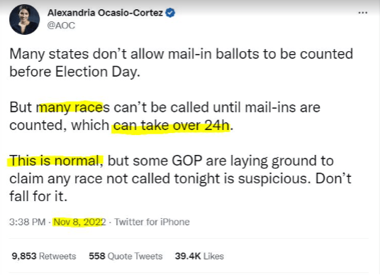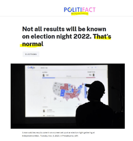 The analgesic refrain that the election results would take longer than usual to come (and “this is normal”) was in some cases coupled with a clairvoyant warning to anticipate a GOP surge which would ultimately subside.