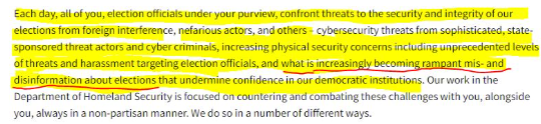 On March 1, 2022, Secretary Mayorkas addressed a group of state-level secretaries of state (responsible for voting integrity and logistics in their respective states) to lay the groundwork for elections, and public discussion about elections, to become a target of federal law-enforcement’s attention: