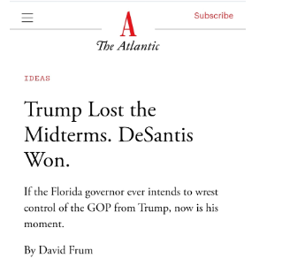 A striking and important anomaly here: one place among midterm 2022 contests that stood out with an Election Day that actually met poll-backed expectations of rampant #MAGA forces winning the “Red Wave” victories that broken-tabulators, paper/ink shortages and infinite drop-box in-flows prevented elsewhere, was Florida. Done in a day, massive turn-out, unambiguous victory for Trump’s rumoured running-mate or heir apparent, Governor Ron DeSantis.