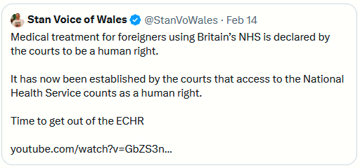 But even making allowance for the existence of a Court of Human Rights, the very decision they took over the NHS is, in and of itself, an invasion of my Rights as a British citizen: I paid into the NHS for forty years and the only people with any kind of access case in relation to it should be migrants who have permanent residency cards.
