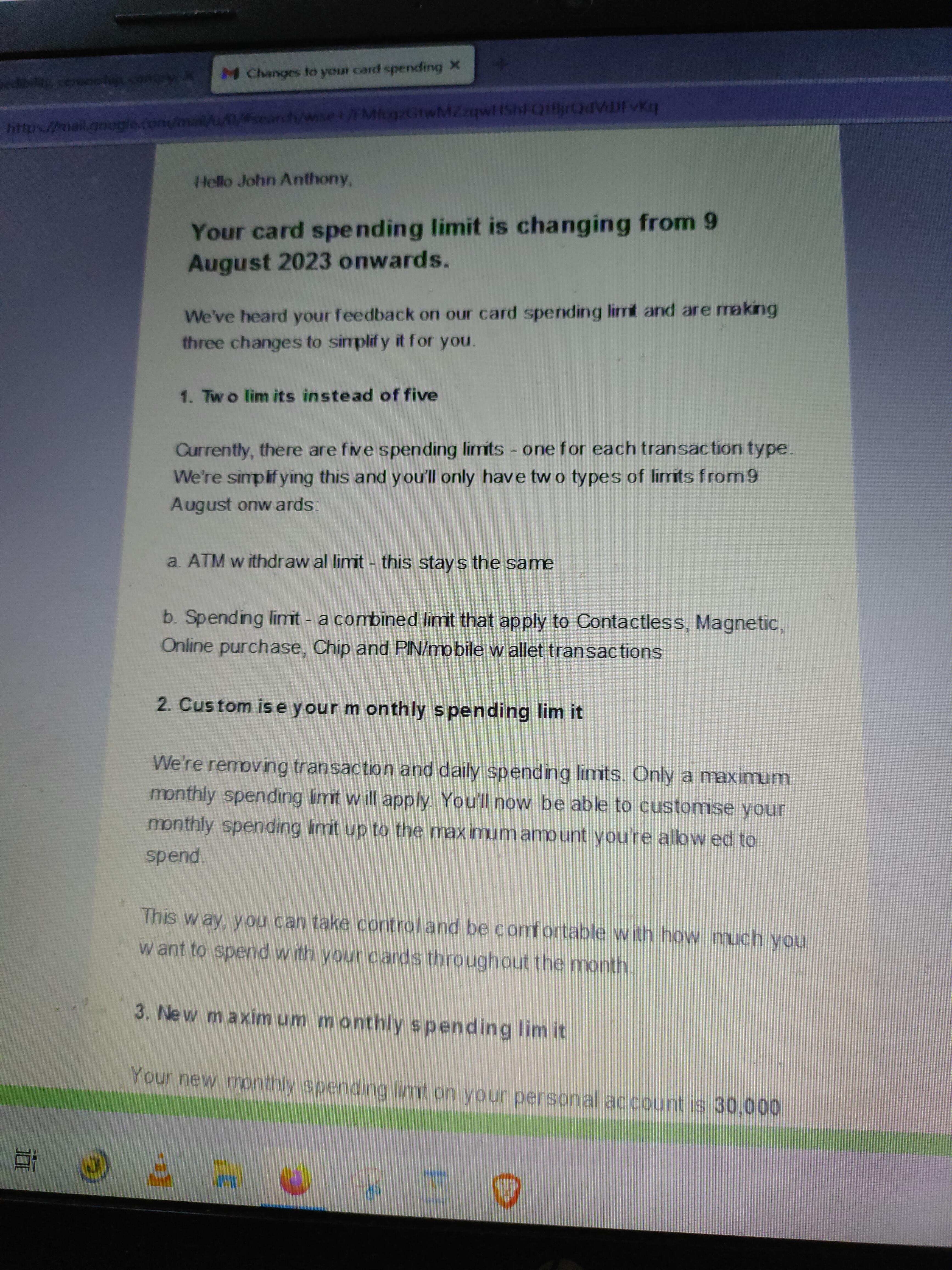 “But now a spending limit will apply, so you can do your own budgeting with less need to contact us”