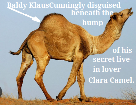 So, it’s time for the inestimable forces of Slog Paparazzi – having gained secret access to Klaus ‘Garbo’ von DavoSchwab’s love nest here in African Ecowas – to reveal this exclusive, unique, one-off snap of liddle Klausi legging it to safety by using his secret lover as the escape vehicle: