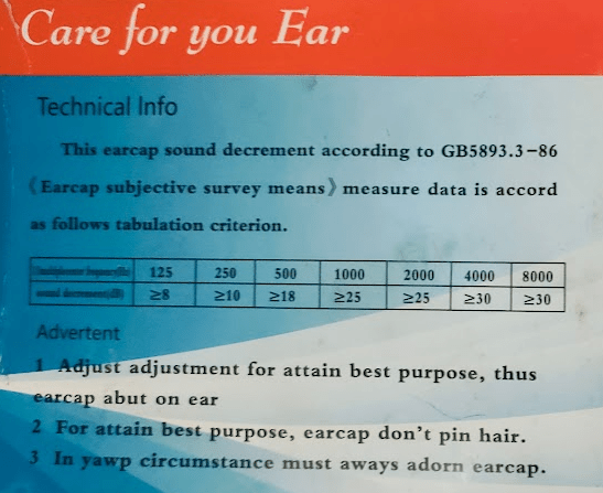 I’ve opined many times before in these columns that if you are in the business of marketing globally relevant brands across hundreds of national languages and local dialects, don’t ever stint on the cost of translating claims, instructions for use and potential benefits. The noise-pollution protective headphones I bought earlier in the week included packaging guidance [see left] that promised me best purpose if I were to adust adjustments and place earcap abut on ear…but not allow the earcap to pin hair, and just to be on the safe side – in case of Yawp circumstance – always adorn earcap on ear up Ere as opposed to on penis down dere in order to maximise sound decrement.